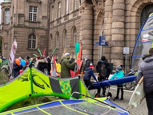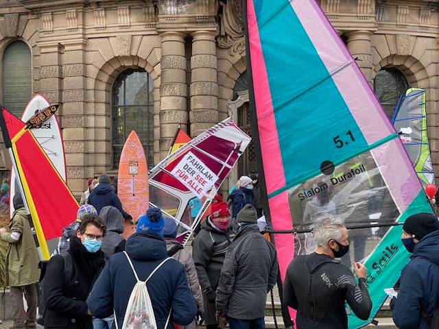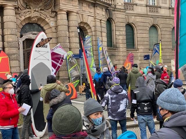 2020 hatten wir eine viel beachtete Demo organisiert. Es zeigte sich ein buntes Bild, mit Surfern, Familien, Kindern, alle befürchten eine Sperrung ihres geliebten Sees