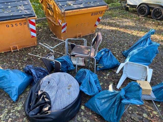 Fotos vom 30.10.2021, gemeinsame Aufräumaktion. Jedes Jahr sind wir überrascht wie viel Müll sich ansammelt. Zahlreiche Bierflaschen, Angelutensilien, Plastikstühle und mehr. 1000 Dank an alle Helfer!