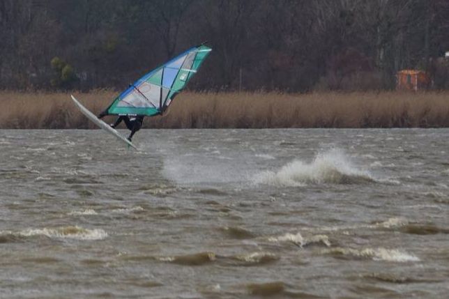 eine Sturmserie erreicht Potsdam im Februar 2022. Sogar die Schwäne kämpften gegen den Fahrlander Swell. Kleine Surfsegel, fliegendes Wasser, Kites mit 6 m waren noch zu gross, und Foiler glitten auch ohne Wing! RESPEKT LEUTE!